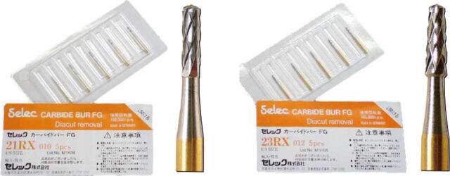 メタル除去の時、メタルに必要以上にバーが食い込まないので切削歯への衝撃を抑えることができます。また、耐久性にも優れています。製品名 ISO 入数 セレックカーバイドバーFG 21RX 010 5本入 セレックカーバイドバーFG 23RX 012
