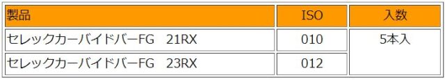 製品名 形態 ISO 入数 セレックカーバイドバーFGリムーバル 1931 010 5本入 1957 010 1958 012